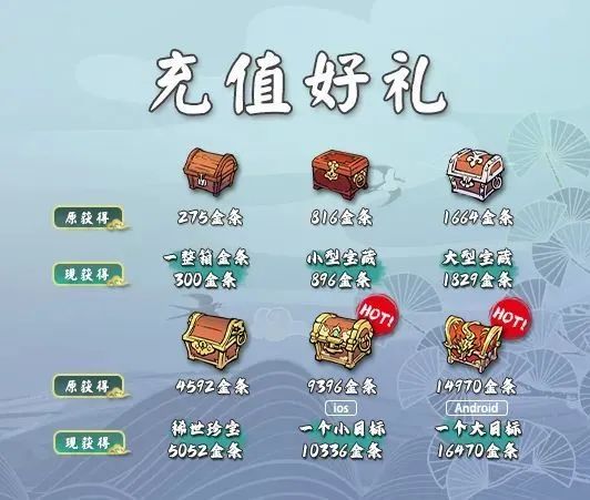 ■活动内容:活动期间,商城内金条充值额外多送10%(除6元档位外其他金条充值档位)。