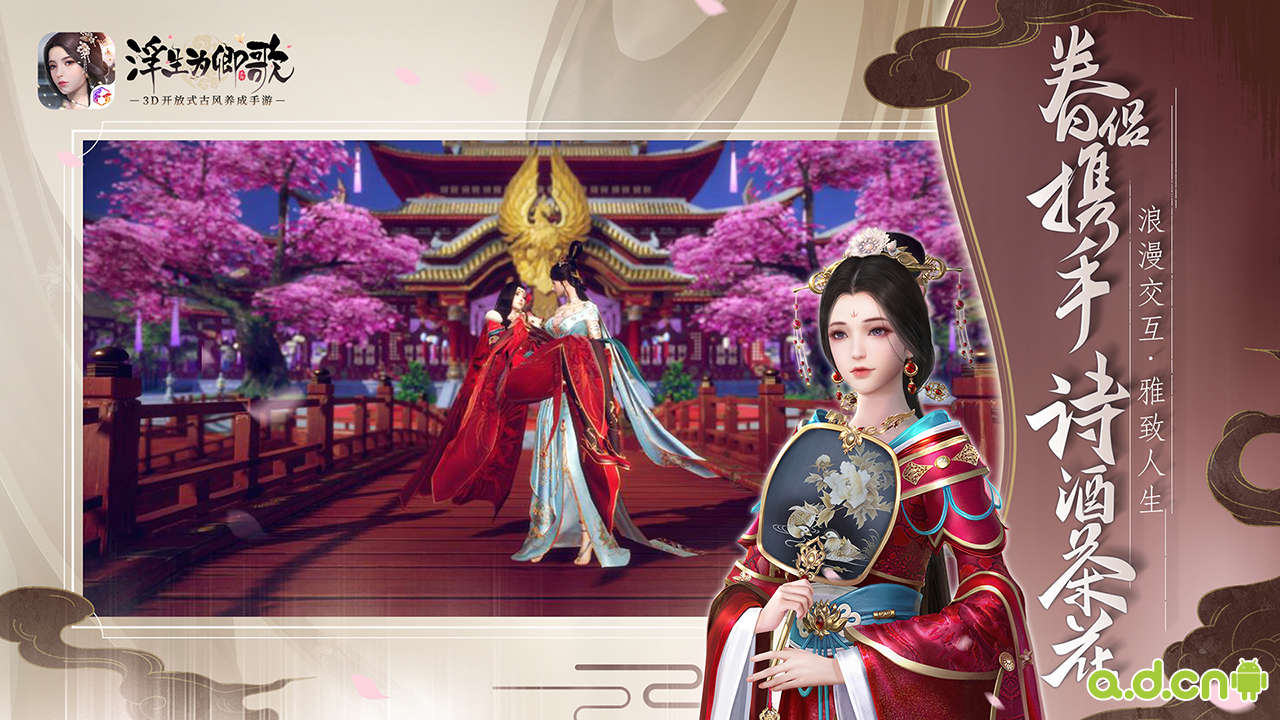 3D开放式古风养成手游《浮生为卿歌》颠覆传统、重构古风RPG。你将在以中国古代生活为舞台的系列爱恨情仇故事之中,通过轻松愉悦的全新方式体验到古典养成、换装收集、家园社交等众多玩法。超高自由度的全3D场景与随机动态探索,无论你是入庙堂之高,亦或是处江湖之远,这里总有一处可以找到你要的天地。