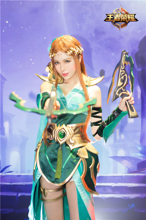 一身绿衣,手持弓箭,披散的长发唯有花环作为妆点~如此优雅的美人,小编这性格估计是怎么着都学不来了,只有羡慕的份儿!