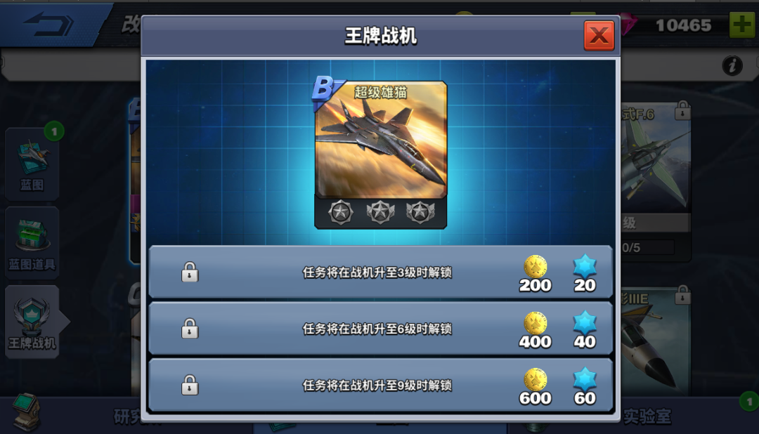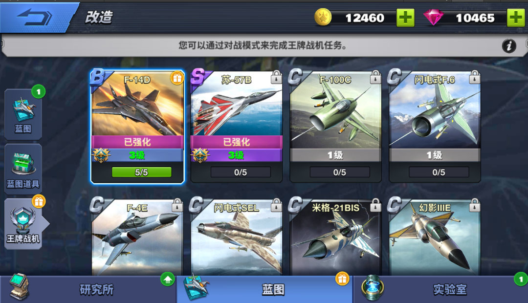 首先,让我们在游戏中打开【改造】功能,然后进入蓝图分页。在这里,你将看到一个全新的界面——王牌战机。这个功能是为了让飞行员们能够更好地升级战机,并获得更多的奖励。