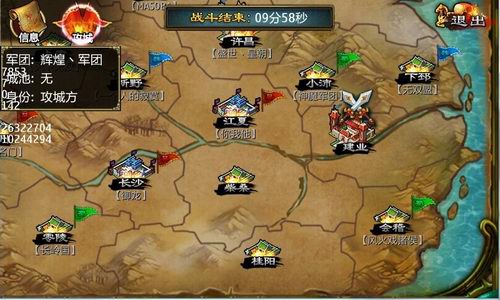 规则简介 全国将划分为20余座城池,供玩家跨区争夺。这些城池按价值与资源分为4级。级别越高的城市自然会有越多的资源,但同时城墙也会越厚,越难以攻破。每场攻城都将是同屏超过40名玩家的超热血即时战斗。发生战斗的城市出现战火小动画,空城并且无人进攻的城市无任何动画。具备出战条件的军团,进入世界地图界面后,会自动定位到攻打的城市,出现图标,玩家点击该图标,进入战斗。或者点击出战,再点击进攻图标,进入战斗。没有挑战资格和具备挑战资格的军团成员都可以进入到其他城市观战。