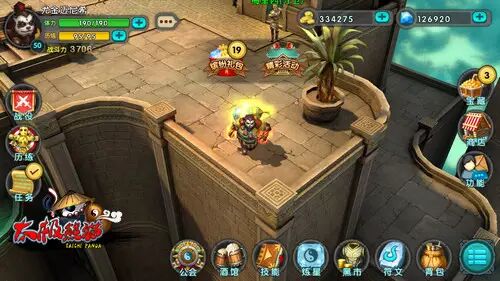 《太极熊猫》研发团队将游戏世界进行空间拓展,打破传统动作手游中死板的小主城画面,让主城也成为游戏的重要元素,不再只是疯狂推图,闲暇时逛逛主城也是不错的选择!剧情任务的随着主城的扩大而铺展开来,展现给玩家一个庞大的世界观体系。