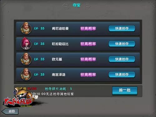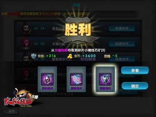 再来说说增加经验的第二个诀窍—夺宝。夺宝是历练中的一个玩法,只需要耗费历练值就可以对系统匹配的玩家抢夺你所需要的宝贝,系统还非常人性化的提醒你几率问题,较高几率基本是100%的,高几率有一定的失败几率,较低几率直接放弃吧,成功的可能性比较低。抢夺成功不仅仅只是获得你所需的物品碎片,还能获得不菲的经验值以及抽奖机会!同时,竞技场挑战如果胜利也是可以获得一定经验值的。