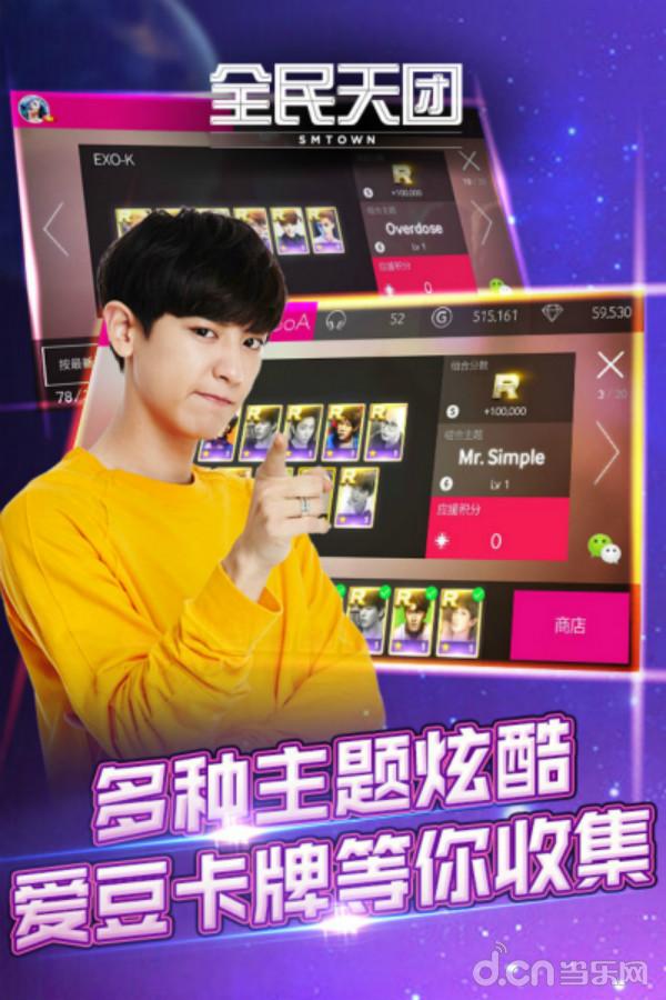 【全民天团】是一款韩国国民级手游,由朴灿烈代言,已经于2015年8月份上线,这是一款采用敲打和滑动为操作模式的音乐手游,以闯关加收集明星卡牌为卖点,集合SM旗下包括少女时代、东方神起、superjunior、EXO等艺人的正版音乐的音乐手游,粉丝们完全可以在游戏的时候享受欧巴们妹子们的热情,游戏所得的珍藏明星头像,受到玩家的热烈追捧。