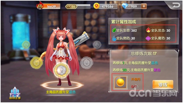 这个功能是最早开启的,基本通过新手任务后就可以使用咯,基本功能就是增加全队成员而非是主角个人的属性,需要消耗修炼丹(可通过完成剧情任务来获得),还是很有性价比的,看图哈!