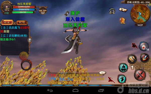 点击屏幕右下角的“奔跑”按钮就可以开启轻功系统,操作十分便捷。开启轻功状态后,奔跑的速度和跳跃的高度都将大大加强,简直是脱离地心引力,根本停不下来!