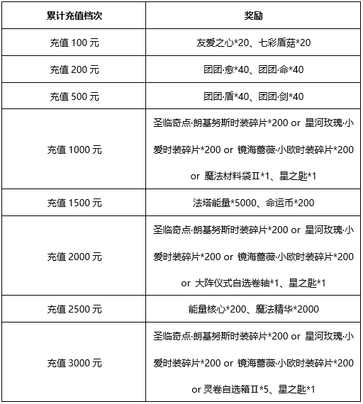 活动5:累计充值赠送圣临奇点·朗基努斯/星河玫瑰·小爱/镜海蔷薇·小欧
