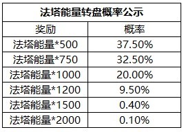 2、法塔能量转盘可以抽取随机数量的法塔能量。